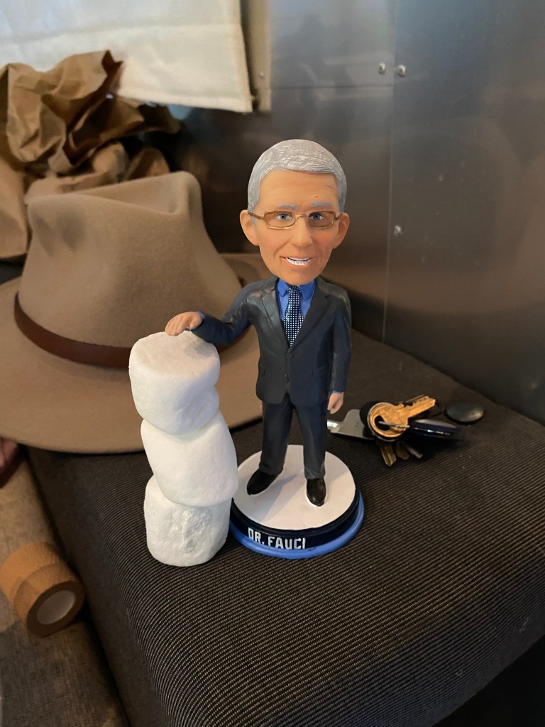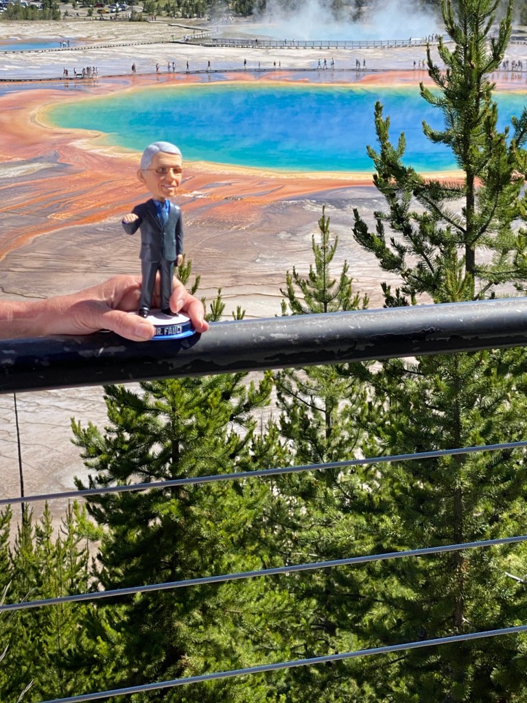 The day before we left we received an order placed months ago; a Dr. Fauci bobblehead doll with his quote “Flatten the curve” proudly etched on the base. We decided to bring him along as our version of the traveling gnome. We had fun documenting our visit with the Dr. It was not meant as a political statement and people loved the idea of getting their picture taken with him.