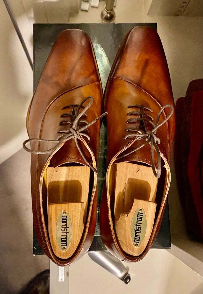I’m not sure what constitutes a lot of footwear for a guy. I keep mine pretty organized so I was a little surprised when the total hit 39 pair. That includes everyday wear, sneakers, boots and dress shoes. If my wife is a fair example for women, my modest collection isn’t even close, but again, for a guy-I don’t know. I don’t buy new shoes often and take reasonably good care of them so I guess I shouldn’t be too surprised with the total. At this stage though, I normally rotate out the ones I haven’t worn since my last new purchase, keeping this total pretty constant. As many pairs as this seems, like I mentioned before I don’t buy new shoes often and then only for a specific purpose which over the last 12+ years has been for durability and comfort. That changed today. In my oddly organized brain, well maintained and polished shoes are a reflection of success or at least a respect of ones appearance. (Of course if you are preforming a particularly dirty job, you likely change into a pair for that function-no harm, no foul.) In other words; if you want to be successful, act successful, which (in my mind) means dressing the part. As I mentioned in an earlier post, the pandemic offered me time to pursue a new dream; getting my real estate license. This culminated in one of my most important interviews, meeting with my new broker. I realized the offices would be generally empty due to to the pandemic so I would only interact with a precious few, but for me this was huge and I needed every confidence I could muster including these new shoes. So whether anyone else even noticed them, I did. Besides, my wife loves them too, so there is another plus.