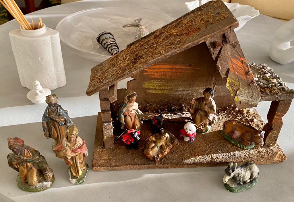 My favorite ornament or display is this one. The three dog’s in the manger represent three very special friends we have lost over the years. It started when we lost baby Jesus, and they were “filling” in. The following year we found Jesus but didn’t think he would mind sharing his space. Merry Christmas!